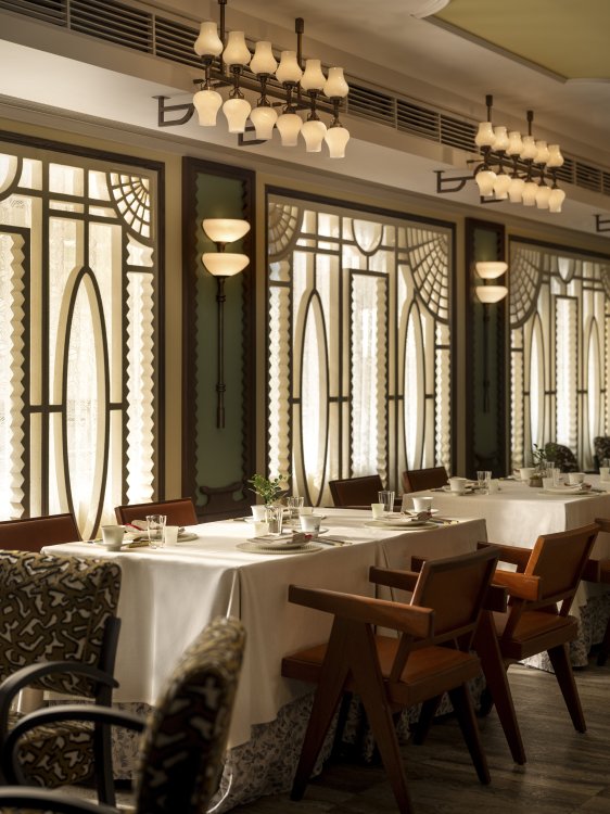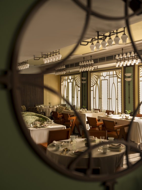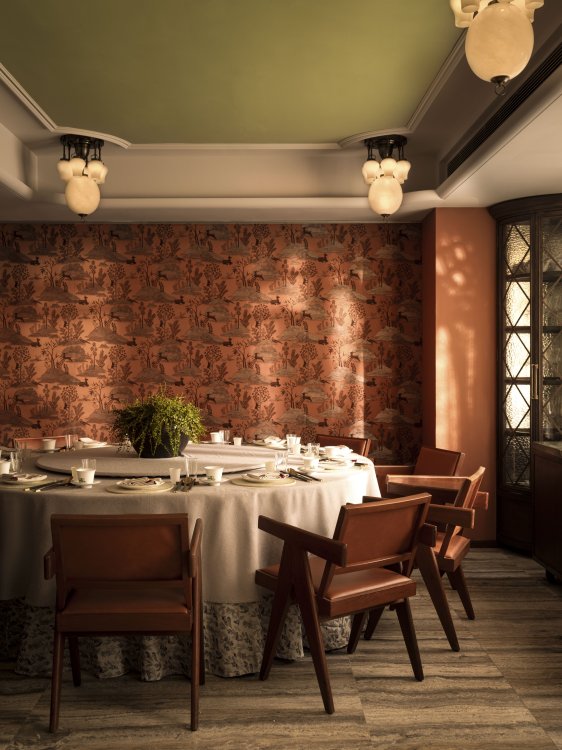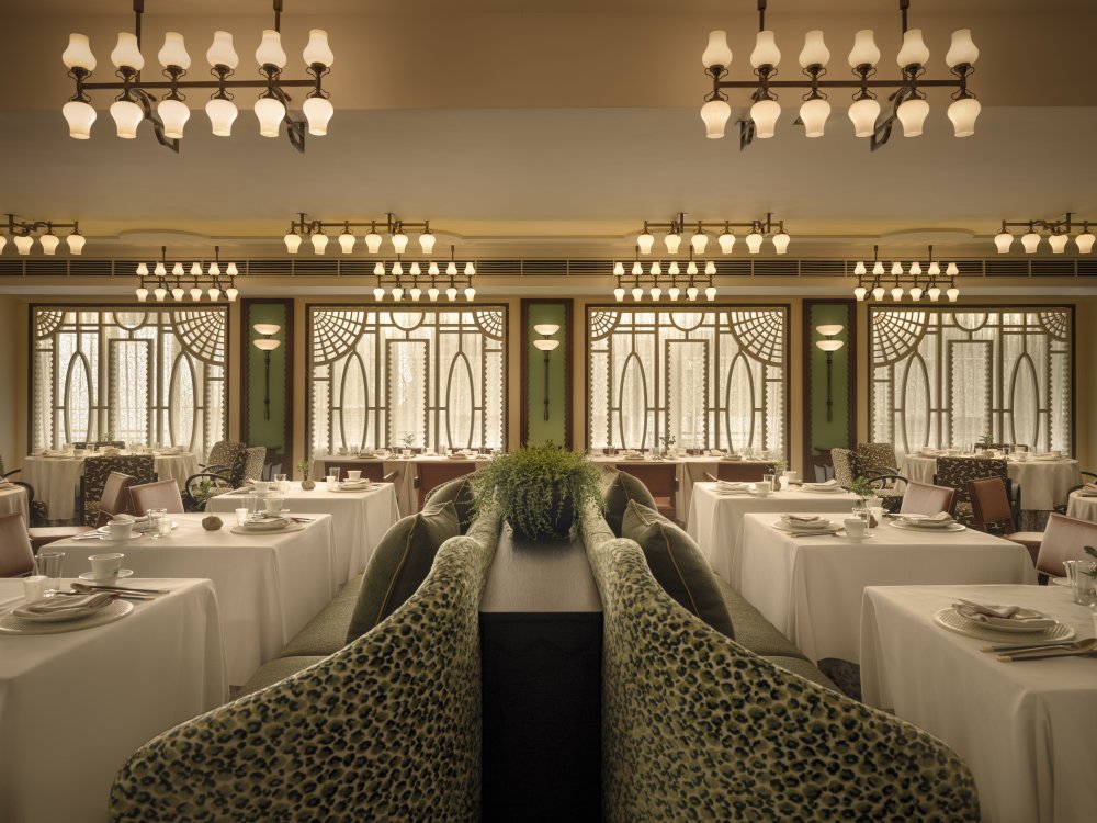 Duddell’s has been reimagined by internationally acclaimed designer André Fu into a contemporary art collector’s maison. Drawing from Lingnan architecture and the 1920s Diao Lou watchtowers, the duplex interior features chinoiserie-inspired pendants, stained-glass screens, and layered symmetry in a palette of pistachio green, mineral blue, and buttery yellow, set against terrazzo, stained oak, and stucco.